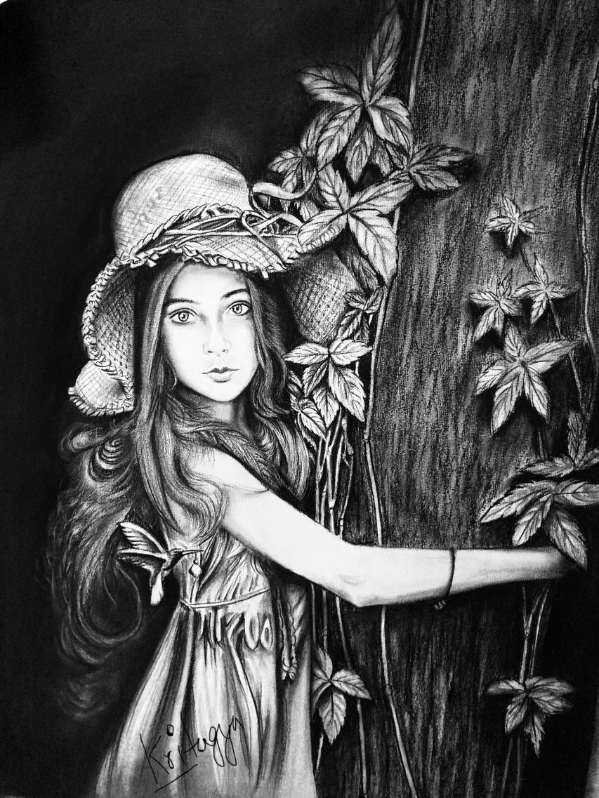 She was moved, touched, and charmed by virtually everything around her. I start by sketching in segments or phases before putting pencil to paper. I visually analyze facial features, study them, and then draw sketches by understanding expressions. This helps me grasp the work process that goes into each portrait drawing.